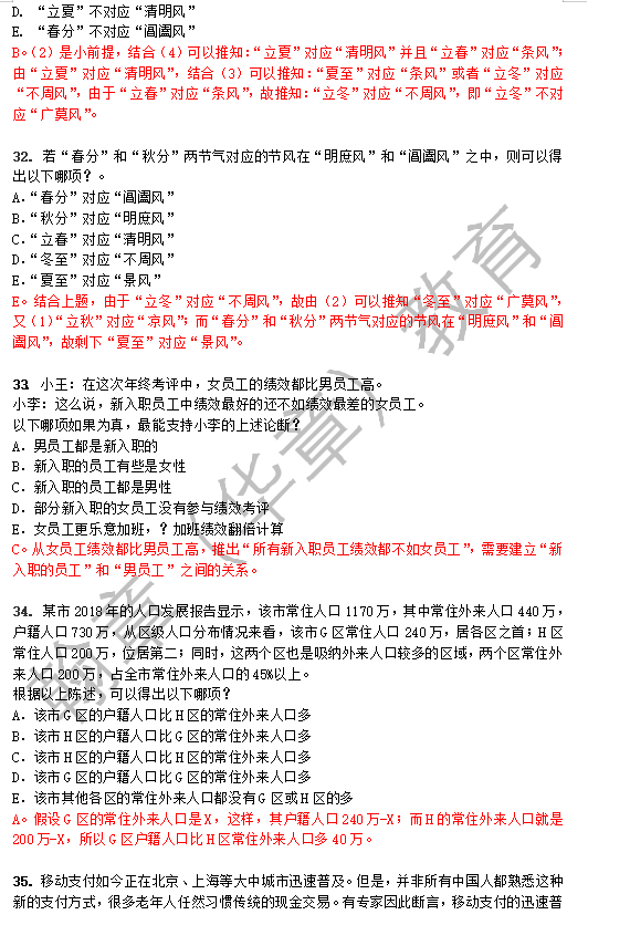 2020MBA/MPAcc/EMBA管理类联考<逻辑>真题答案+解析