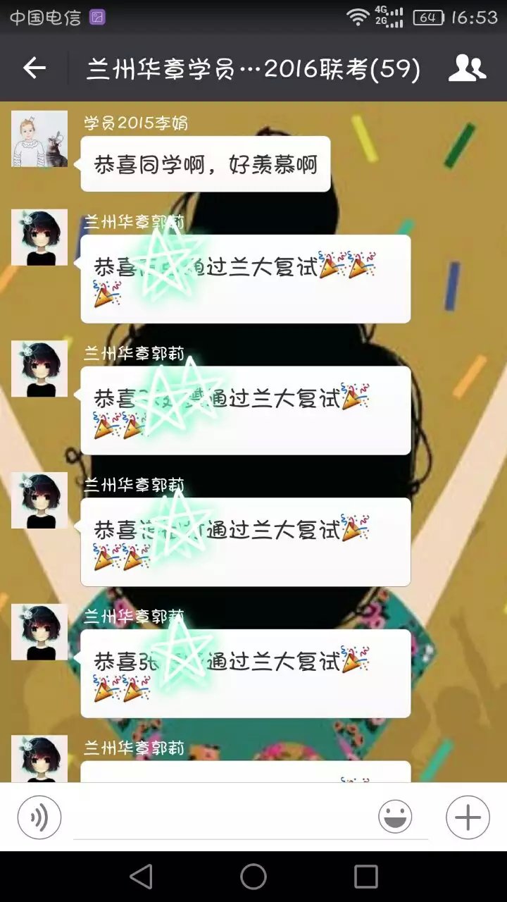 兰州华章教育祝贺同学们复试取得好成绩!我们会不断的努力,会竭尽全力的为您服务,华章值得您的信赖、华章珍惜您的信赖,伴随您一路成长。